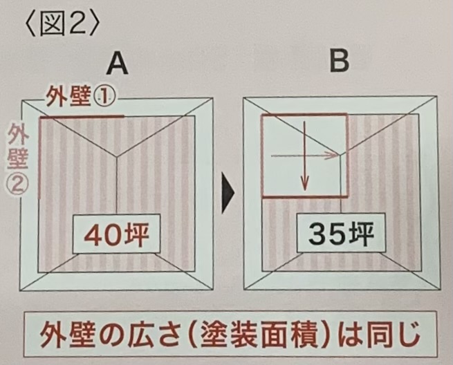 実はAの住まいとBの住まいは外壁の広さは同じ、つまり塗装面積は同じです。