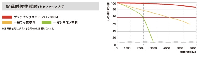 ※あくまで試験環境下における推測値であり、耐候性を保証するものでは