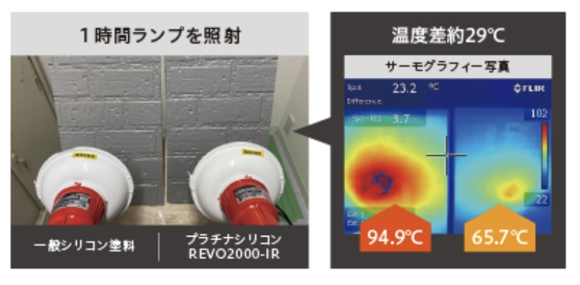 一般的な塗料と比較して、約29℃の温度差があり、すぐれた遮熱性を発揮する