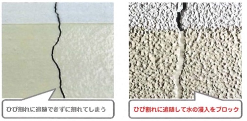 この伸び縮みする特徴で、壁のひび割れを表面化させず、水が浸入する隙間を作りません。