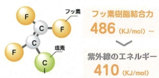 フッ素樹脂の結合力が高く、劣化しにくい。