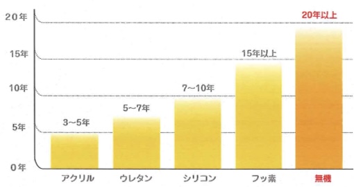 ・塗膜の寿命が長く、塗り替え後も長持ちする。