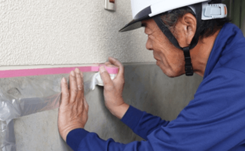 養生テープを歪みが生じないようにまっすぐ張ることで、塗装する箇所・塗装しない箇所の境目が綺麗が直線になるように整えていきます。